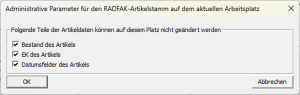 Die lokalen Parameter beziehen sich immer auf den aktuellen Arbeitsplatz und sind nicht systemweit gültig. Dadurch kann spezifischer eingestellt werden welche Bearbeitungsmöglichkeiten von Daten an einem Platz zugelassen sind.