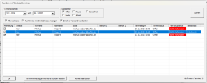 Hier kann nach einem Datumsbereich und dem Terminstatus gefiltert werden. Markierten Datensätzen kann dann eine Email gesendet werden, entweder mit Vorschau oder auch vollautomatisch.